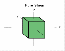 During pure shear the sides of the cube that are parallel to the Z axis are shortened, while the lengths of the sides that are parallel to the X axis increase. In contrast, the lengths of the sides of the cube that are parallel to the Y direction remain unchanged. When such geometrical changes occur during the transformation of a rock body to a distorted state then the mechanism of distortion is termed plane strain.